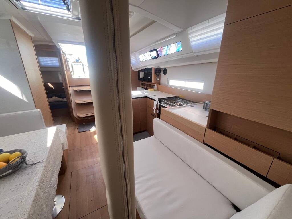 Segelyacht Sun Odyssey 410 Brasilia, Baujahr 2024, liegt in Sardinien, Cannigione, Sardinien, Italien. Sie verfügt über 3 Kabinen, bietet Platz für 6 + 2 Personen und hat 2 Toiletten.