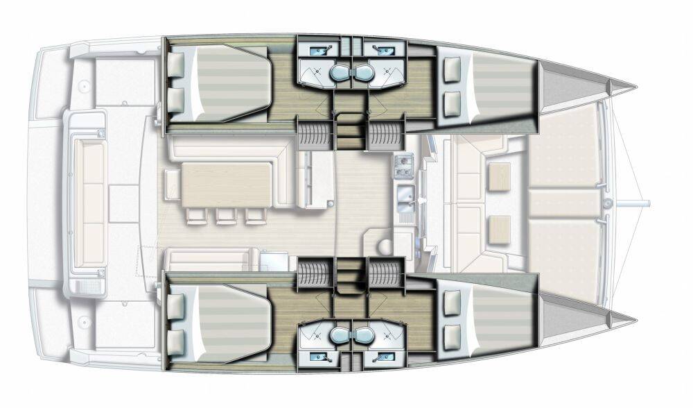 Katamaran Bali 4.1 Crystal Waters, izgrađena 2019, matična luka je Kos, Kos Marina, Dodecanese, Grčka. Ima 4 + 2 kabina, može primiti 8 + 2 + 2 gostiju i ima 4 WC-a.