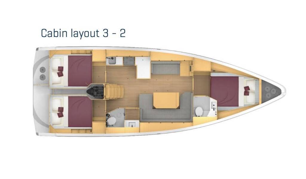 Jedrilica Bavaria C42 Aeolus, izgrađena 2022, matična luka je Athens, Alimos marina, Athens area/Saronic/Peloponese, Grčka. Ima 3 kabina, može primiti 6 + 1 gostiju i ima 2 WC-a.