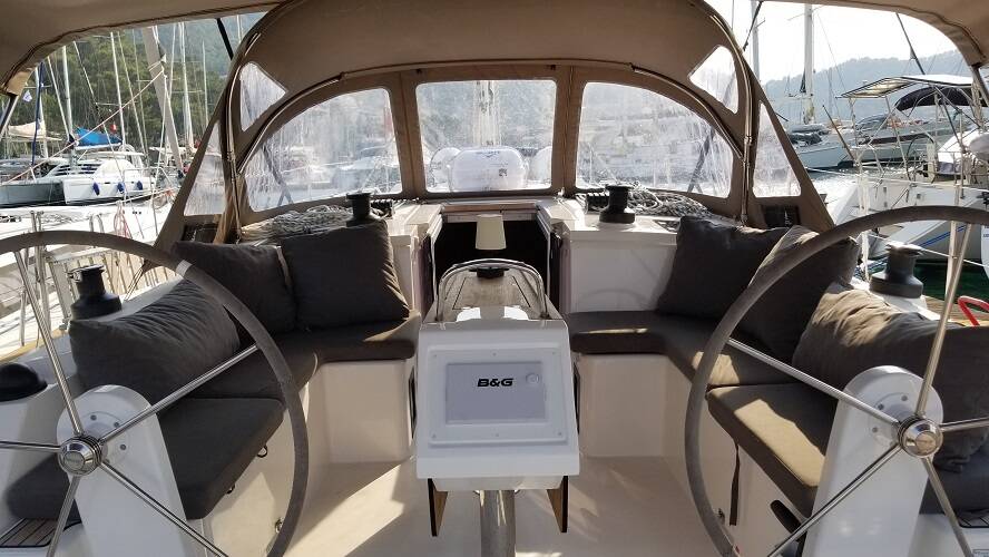 Jedrilica Bavaria C42 Fiesta, izgrađena 2021, matična luka je Fethiye, Yacht Classic Hotel Marina, Egejska regija, Turska. Ima 3 kabina, može primiti 6 gostiju i ima 2 WC-a.