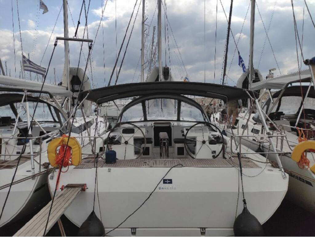 Jedrilica Bavaria C45 Katrin, izgrađena 2020, matična luka je Athens, Alimos marina, Athens area/Saronic/Peloponese, Grčka. Ima 5 kabina, može primiti 10 + 2 gostiju i ima 2 WC-a.