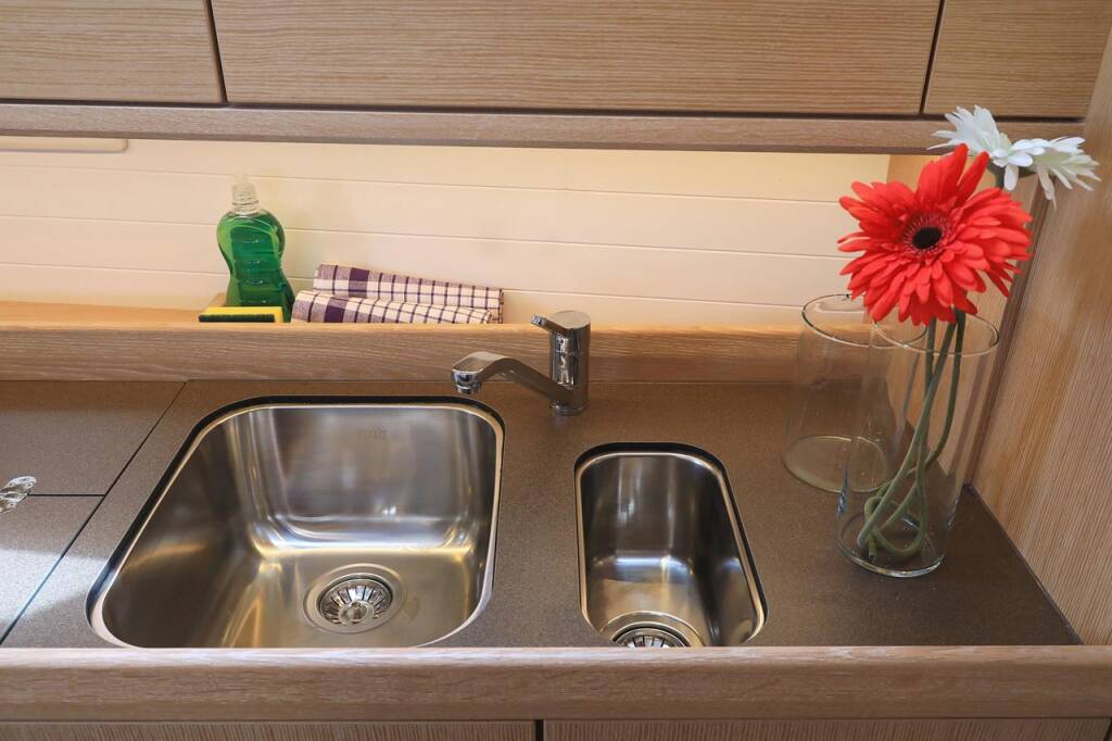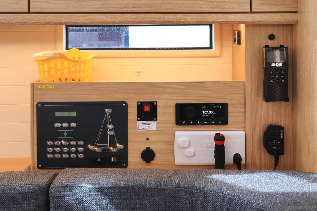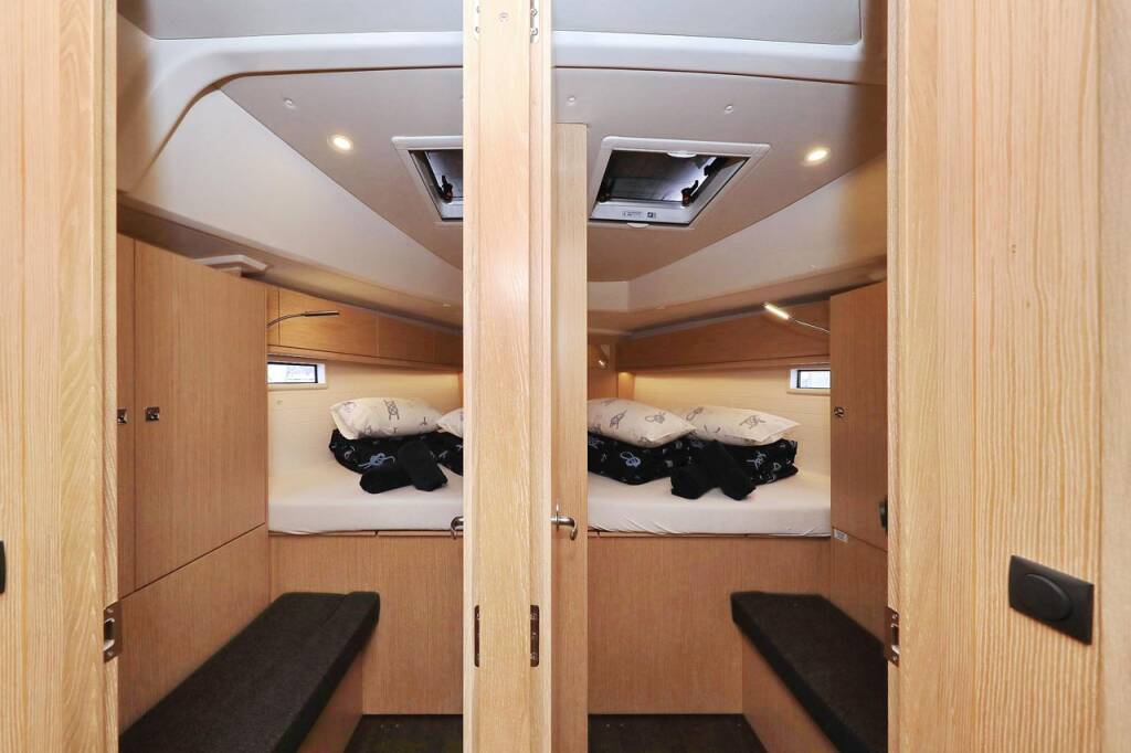 Jedrilica Bavaria Cruiser 46 Abiona, izgrađena 2021, matična luka je Marina Kornati, Biograd, Zadarska regija, Hrvatska. Ima 4 kabina, može primiti 8 + 1 gostiju i ima 3 WC-a.
