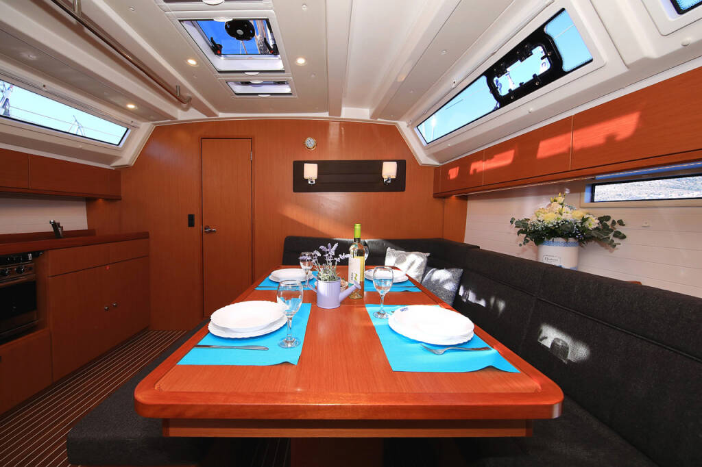 Jedrilica Bavaria Cruiser 46 Kneginja, izgrađena 2021, matična luka je Marina Kornati, Biograd, Zadarska regija, Hrvatska. Ima 4 kabina, može primiti 8 + 1 gostiju i ima 3 WC-a.