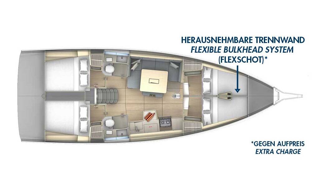 Jedrilica Dufour 41 Performance Bella II, izgrađena 2025, matična luka je Marina Kornati, Biograd, Zadarska regija, Hrvatska. Ima 4 kabina, može primiti 8 + 2 gostiju i ima 2 WC-a.