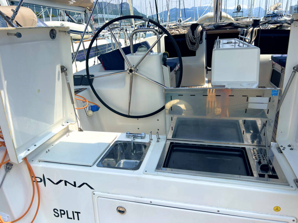 OPREMA: Bow thruster ; Grijanje ; Inverter ; Bimini ; Tikovina ; Gril u kokpitu ; Jastuci u kokpitu ; Vanbrodski motor ; NESPRESSO aparat za kavu ; Internet