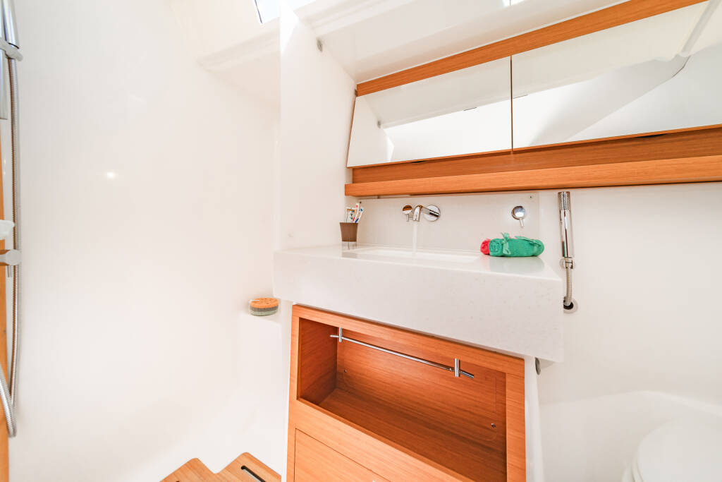 Jedrilica Dufour 470 Edelweiss, izgrađena 2022, matična luka je Kos, Kos Marina, Dodecanese, Grčka. Ima 4 + 1 kabina, može primiti 8 + 1 gostiju i ima 4 WC-a.