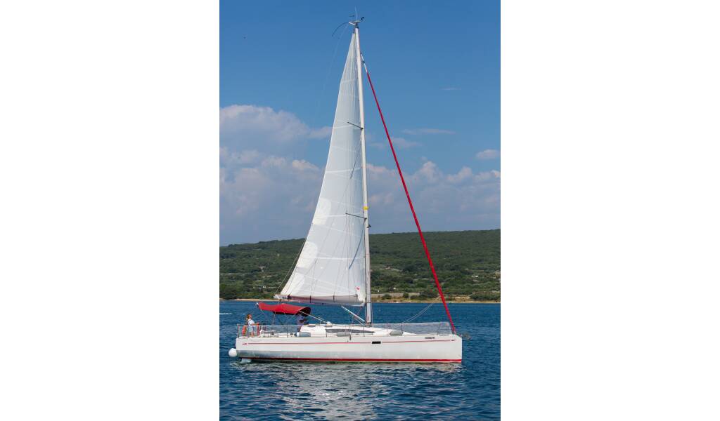 Jedrilica Elan 350 Performance Euphoria, izgrađena 2012, matična luka je Marina Punat, Krk, Kvarner, Hrvatska. Ima 3 kabina, može primiti 6 + 2 gostiju i ima 1 WC-a.