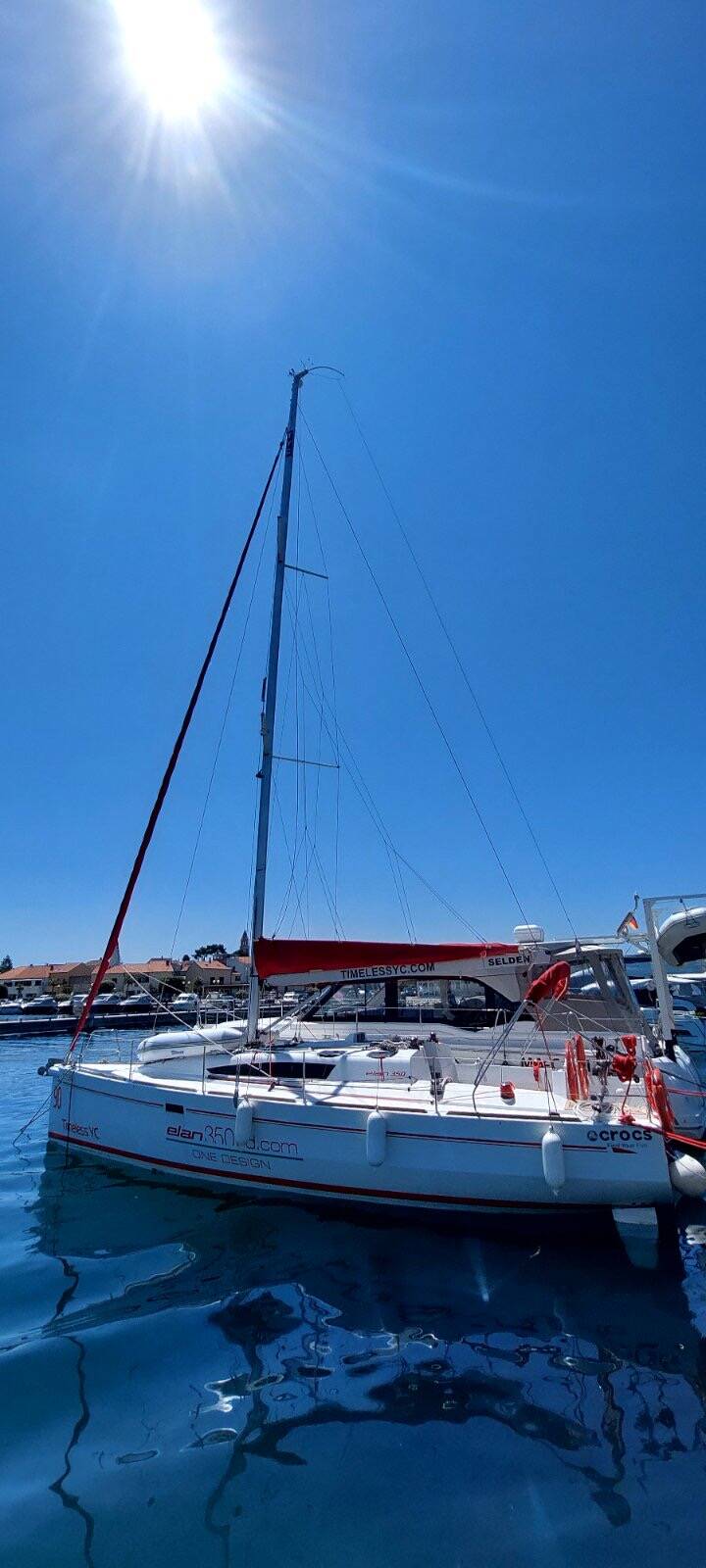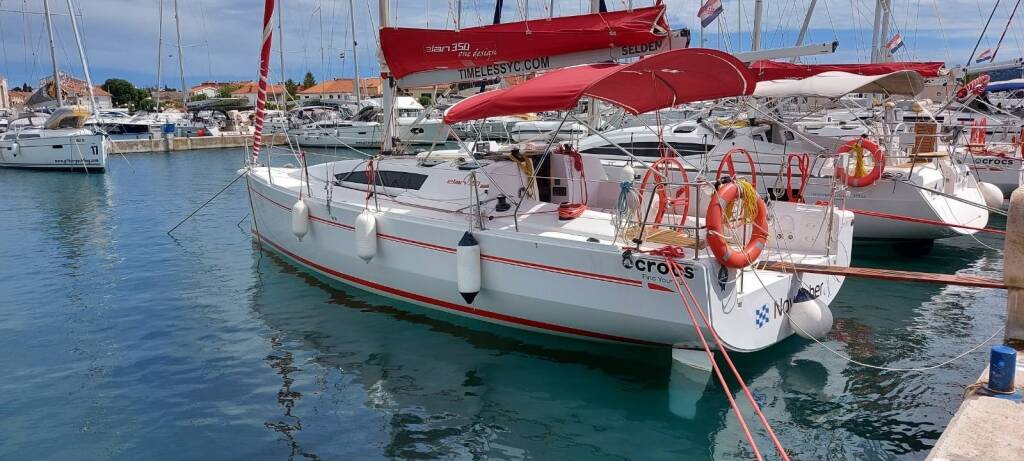 Jedrilica Elan 350 Performance Tango, izgrađena 2012, matična luka je Marina Kornati, Biograd, Zadarska regija, Hrvatska. Ima 3 kabina, može primiti 6 + 2 gostiju i ima 1 WC-a.