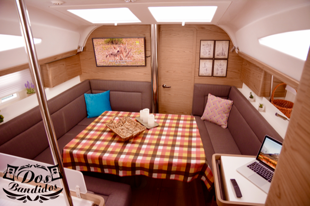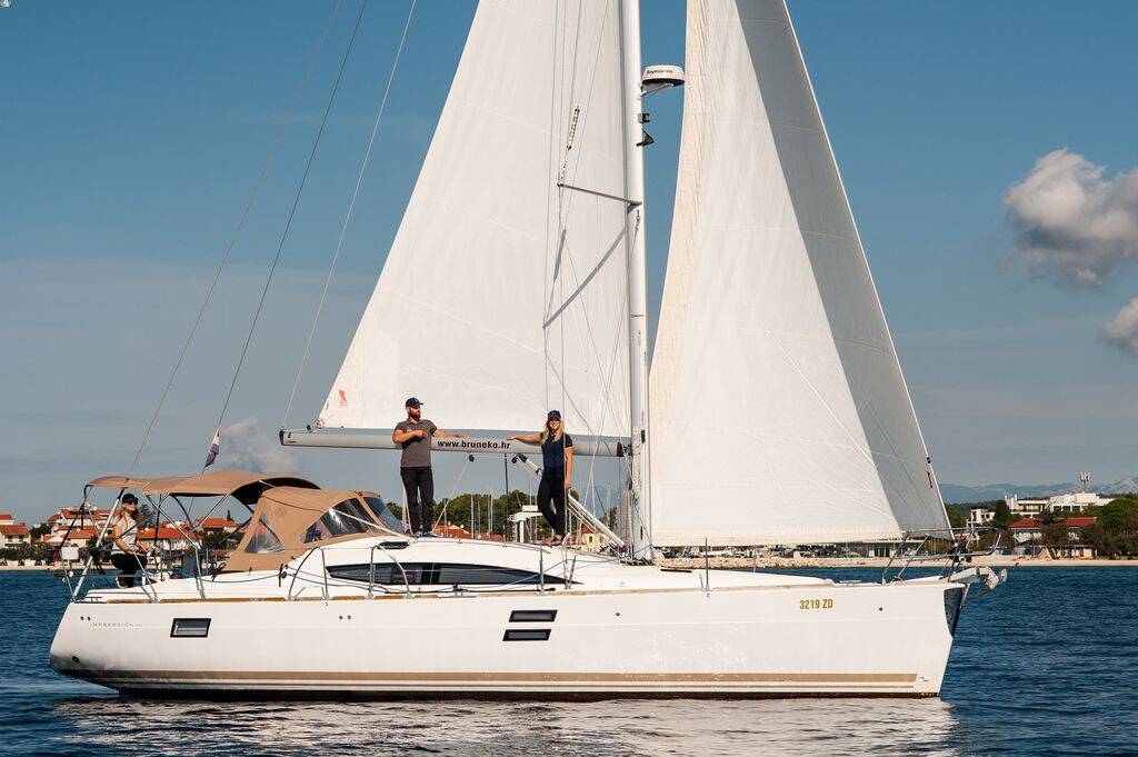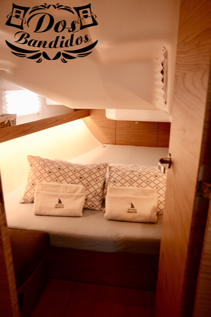 Jedrilica Elan Impression 40 Dos Bandidos, izgrađena 2018, matična luka je Marina Zadar (ex. Tankerkomerc), Zadarska regija, Hrvatska. Ima 3 kabina, može primiti 6 + 2 gostiju i ima 2 WC-a.