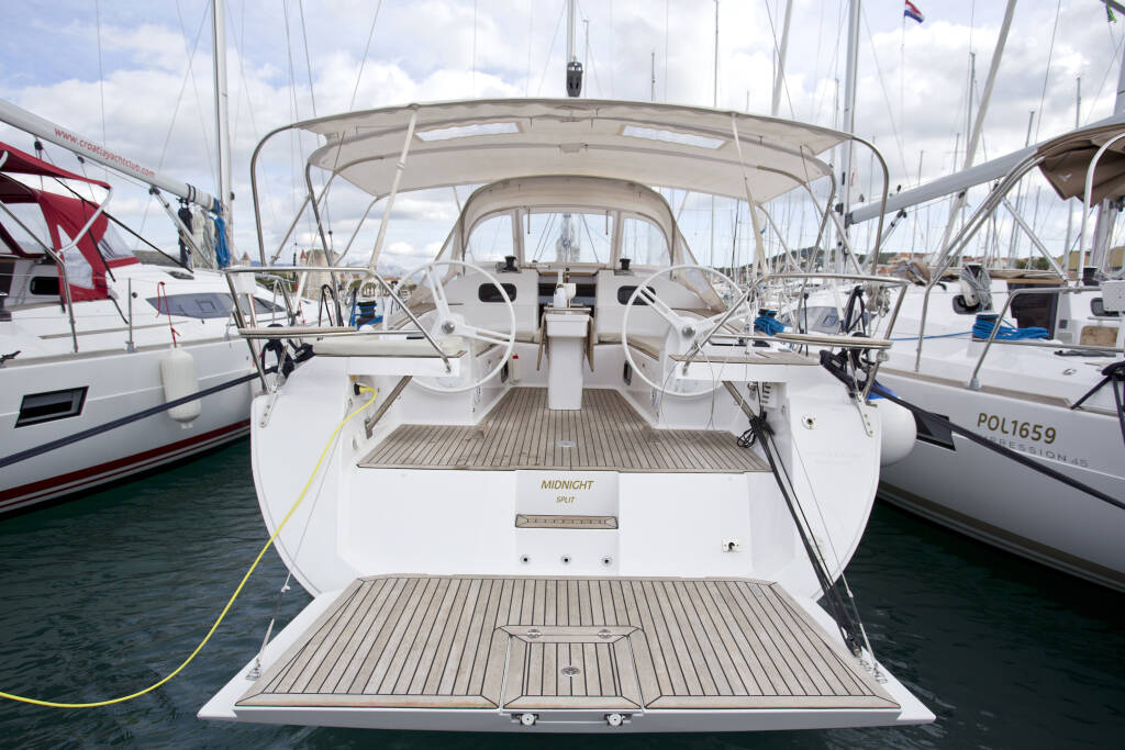 Jedrilica Elan Impression 45 Midnight, izgrađena 2017, matična luka je Trogir, Marina Trogir (ex.SCT), Split regija, Hrvatska. Ima 4 kabina, može primiti 8 + 2 gostiju i ima 2 WC-a.