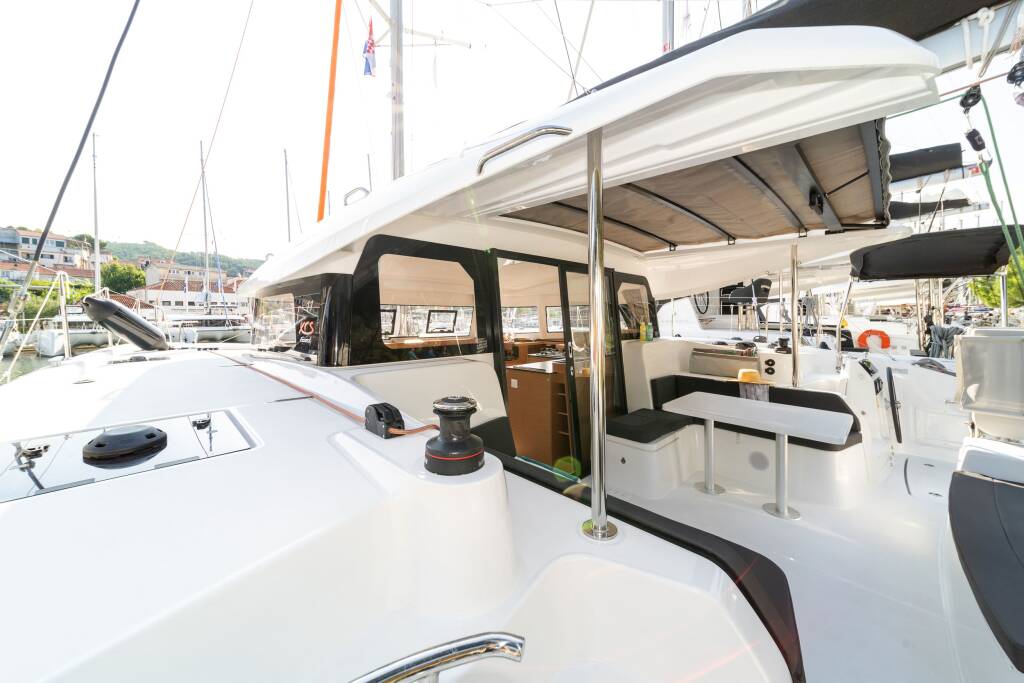 Katamaran Excess 11 First Glimpse, izgrađena 2023, matična luka je ACI Marina Skradin, Šibenska regija, Hrvatska. Ima 4 + 2 kabina, može primiti 8 + 2 gostiju i ima 2 + 1 WC-a.