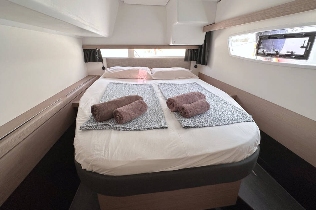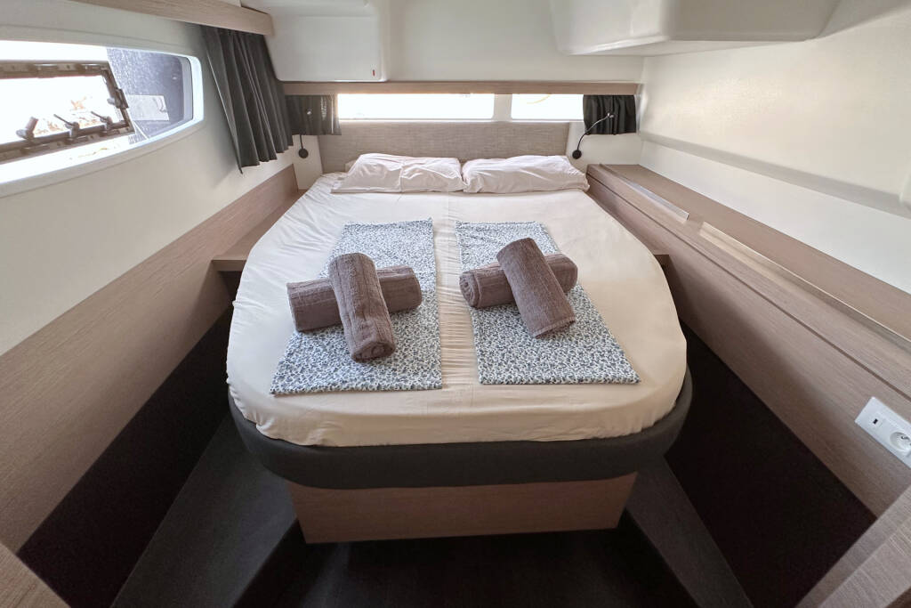Katamaran Fountaine Pajot Isla 40 Laja, izgrađena 2023, matična luka je Mallorca, Can Pastilla, Balearic Islands, Španjolska. Ima 4 + 1 kabina, može primiti 8 + 2 + 1 gostiju i ima 2 WC-a.