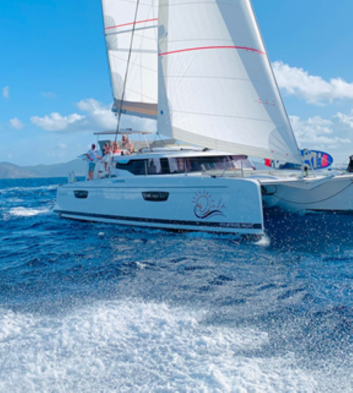 Katamaran Fountaine Pajot Tanna 47 Ojala, izgrađena 2021, matična luka je St. Thomas, Frenchtown Marina, US- Virgin Islands, USA Djevičanski otoci. Ima 5 + 1 kabina, može primiti 10 + 1 gostiju i ima 5 WC-a.