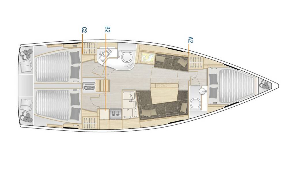 Uvjeti jednosmjerne vožnje: Cijena jednosmjerne vožnje + usluga skipera obavezna za cijelo razdoblje rezervacije + naknada za privez u luci iskrcaja/ukrcaja - Plačanje u bazi