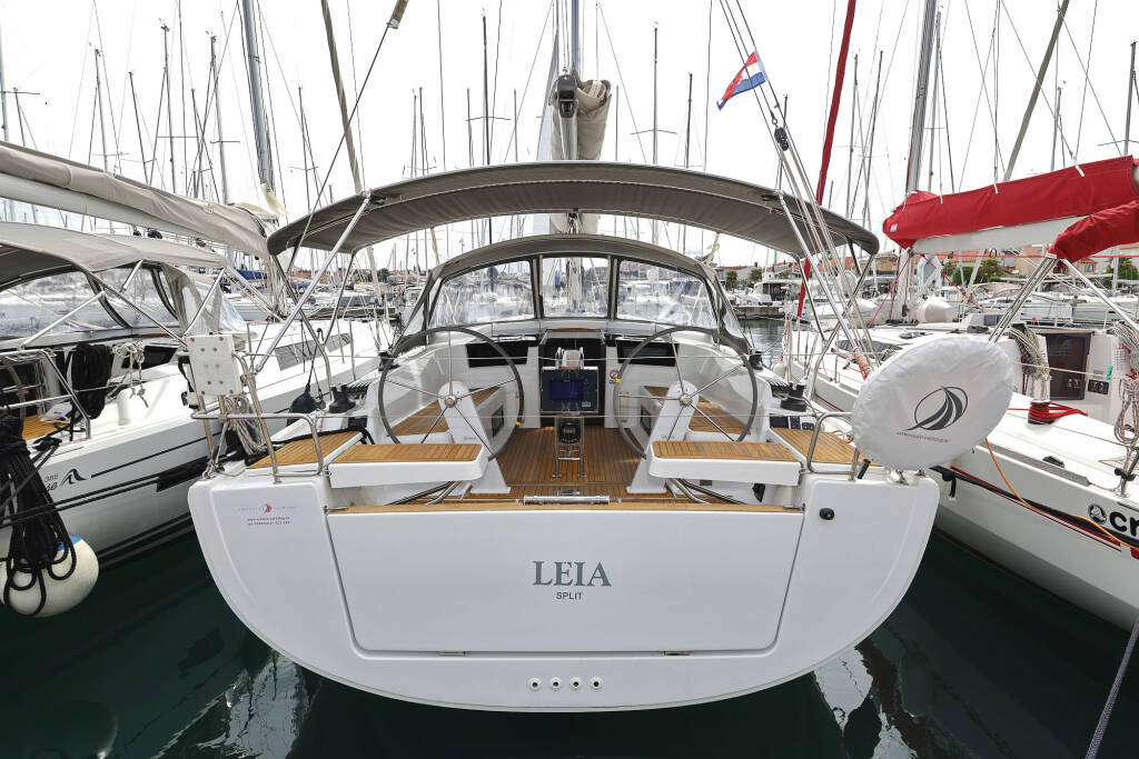 Jedrilica Hanse 418 Leia, izgrađena 2020, matična luka je Marina Kornati, Biograd, Zadarska regija, Hrvatska. Ima 3 kabina, može primiti 6 + 2 gostiju i ima 2 WC-a.