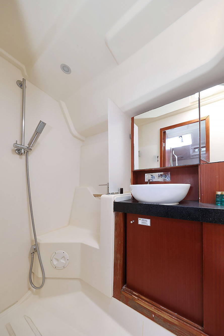 Jedrilica Hanse 455 Audrey, izgrađena 2017, matična luka je Dubrovnik, Komolac, ACI Marina Dubrovnik, Dubrovnik regija, Hrvatska. Ima 4 kabina, može primiti 8 + 2 gostiju i ima 2 WC-a.