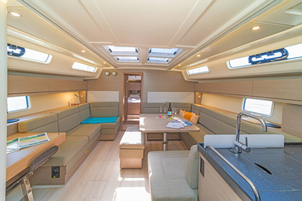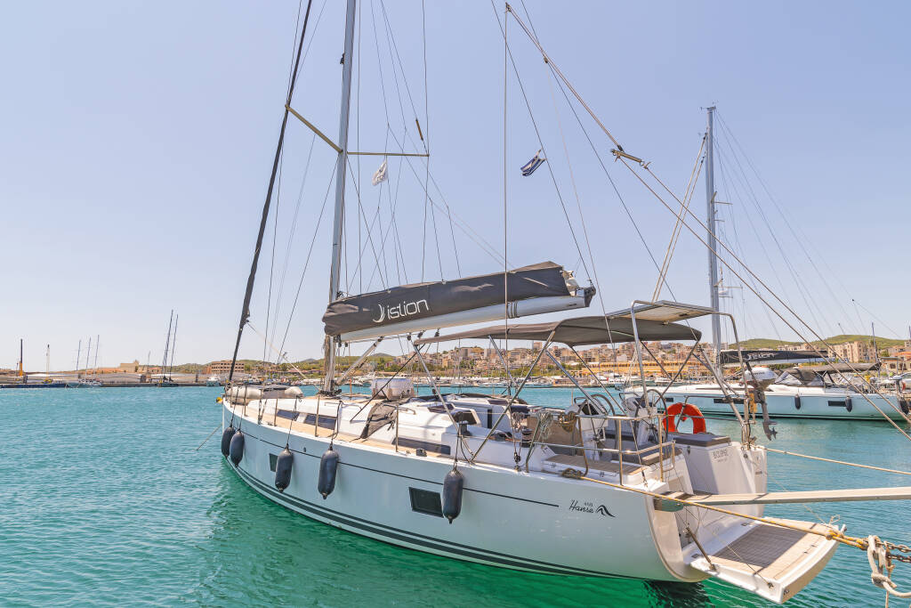 Jedrilica Hanse 458 Eclipse, izgrađena 2020, matična luka je Lavrion, main port, Athens area/Saronic/Peloponese, Grčka. Ima 4 kabina, može primiti 8 + 2 gostiju i ima 2 WC-a.