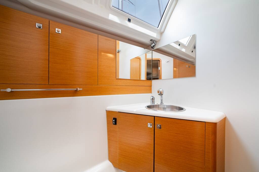 Jedrilica Jeanneau 53 Regina V, izgrađena 2010, matična luka je Lavrion, main port, Athens area/Saronic/Peloponese, Grčka. Ima 5 + 1 kabina, može primiti 10 + 2 + 1 gostiju i ima 3 + 1 WC-a.