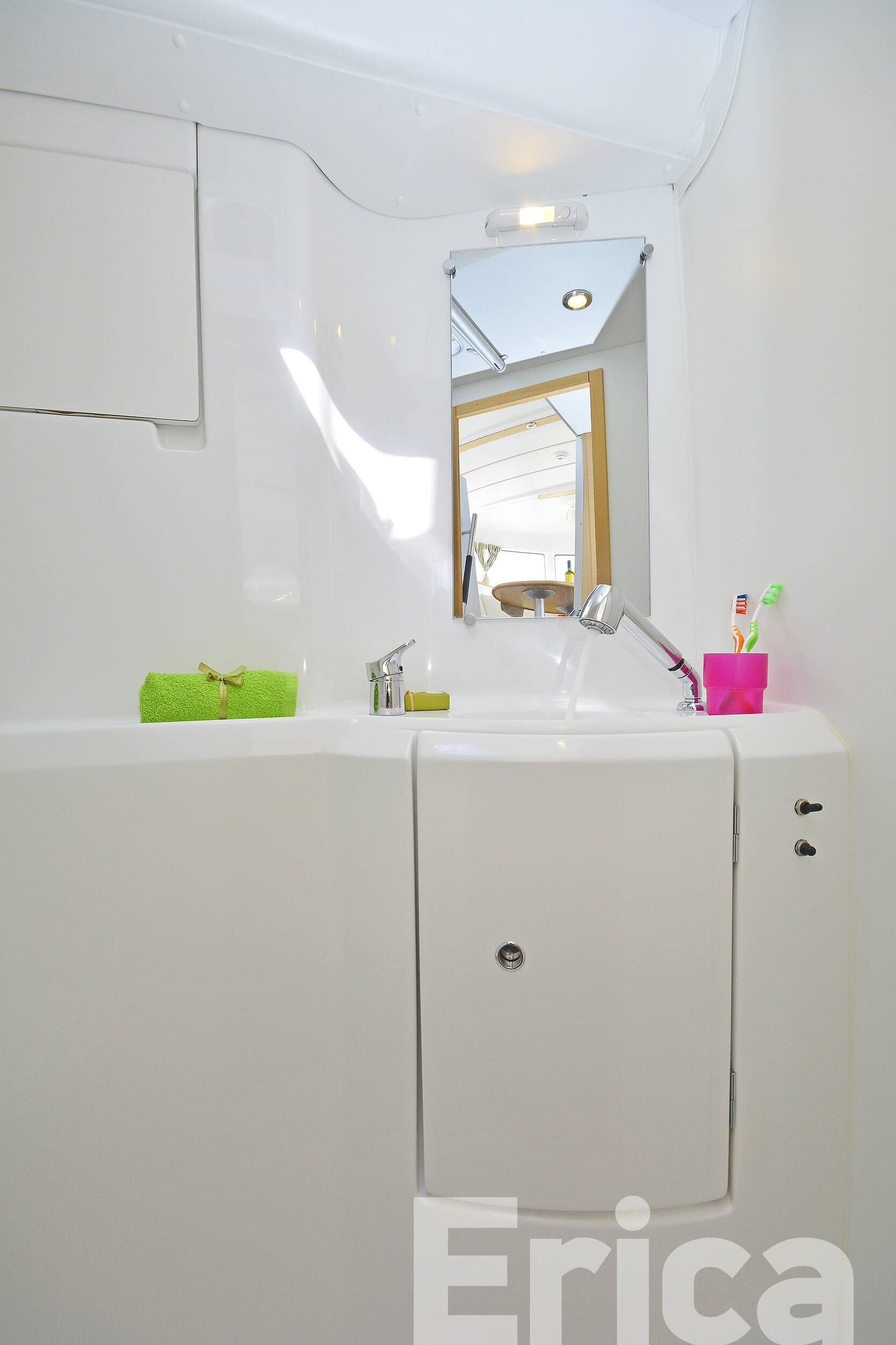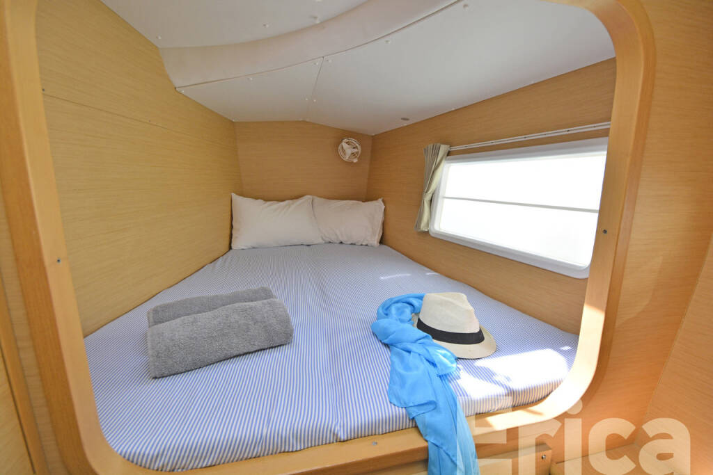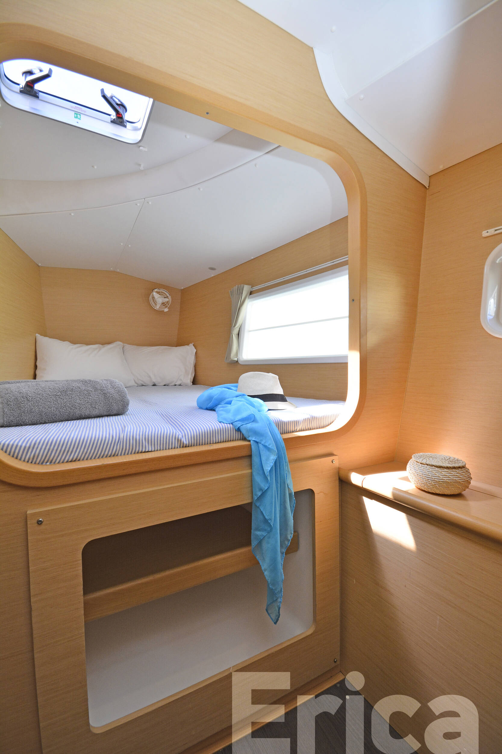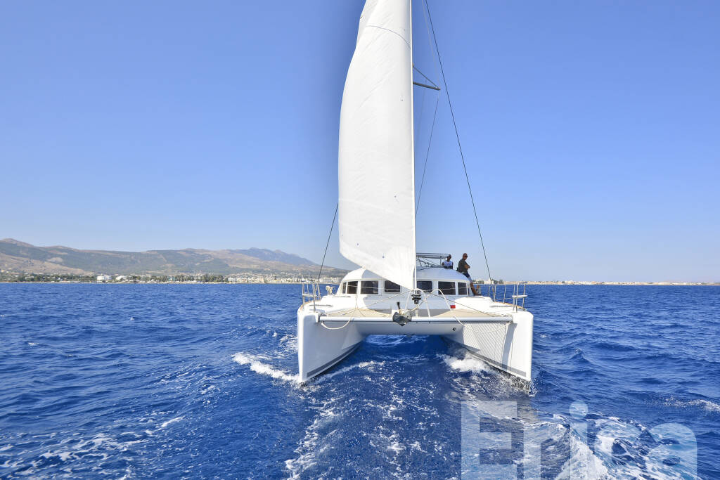 Katamaran Lagoon 380 S2 Erica, izgrađena 2014, matična luka je Kos, Kos Marina, Dodecanese, Grčka. Ima 4 + 2 kabina, može primiti 8 + 2 gostiju i ima 2 WC-a.