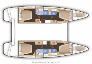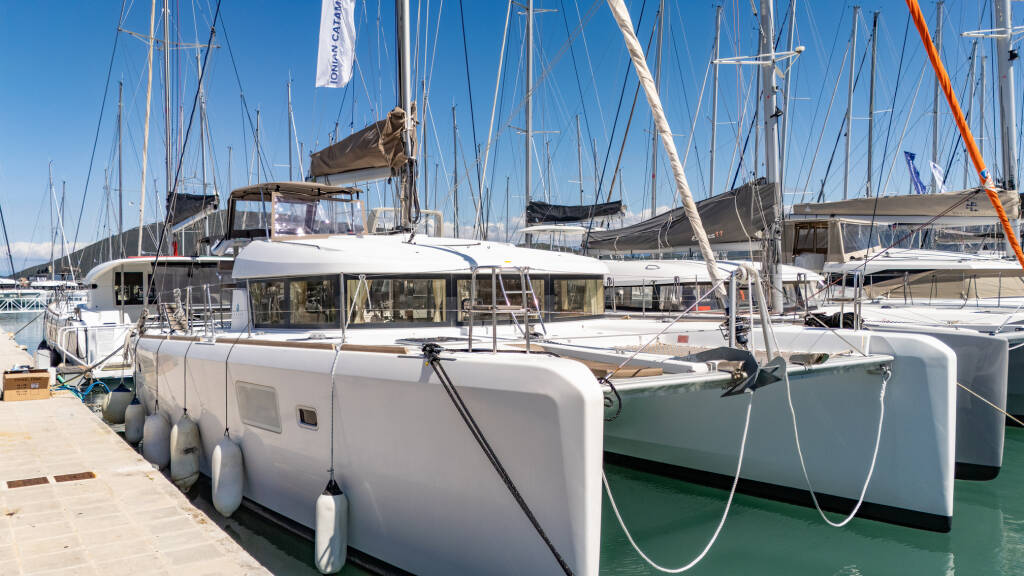 Katamaran Lagoon 39 Deep Blue, izgrađena 2016, matična luka je Lefkas main port, Ionian Islands, Grčka. Ima 4 + 2 kabina, može primiti 8 + 2 gostiju i ima 4 WC-a.