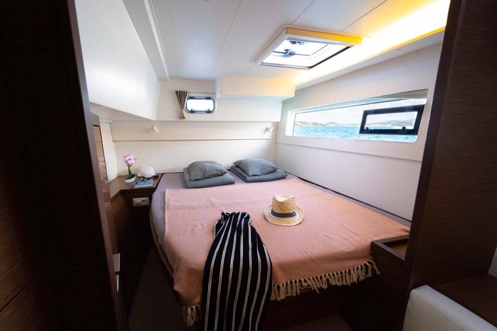 Katamaran Lagoon 40 Millennium Falcon, izgrađena 2019, matična luka je Marina Mandalina, Šibenik, Šibenska regija, Hrvatska. Ima 3 + 2 kabina, može primiti 6 + 2 + 2 gostiju i ima 2 WC-a.