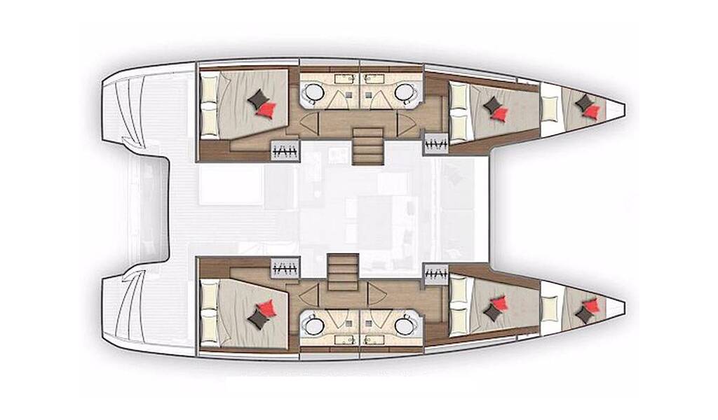 Katamaran Lagoon 40 You, izgrađena 2022, matična luka je Marina Kornati, Biograd, Zadarska regija, Hrvatska. Ima 4 + 2 kabina, može primiti 8 + 2 + 2 gostiju i ima 4 WC-a.