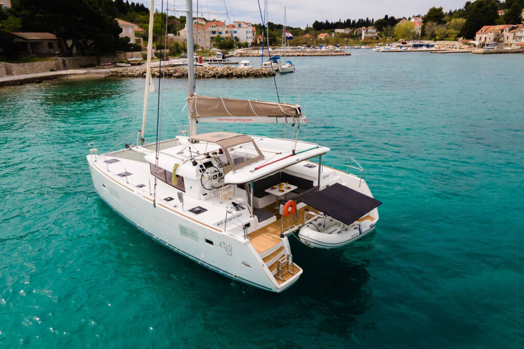 Katamaran Lagoon 400 S2 Miss Moneypenny, izgrađena 2016, matična luka je Marina Mandalina, Šibenik, Šibenska regija, Hrvatska. Ima 4 + 2 kabina, može primiti 8 + 2 + 2 gostiju i ima 4 WC-a.