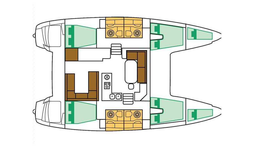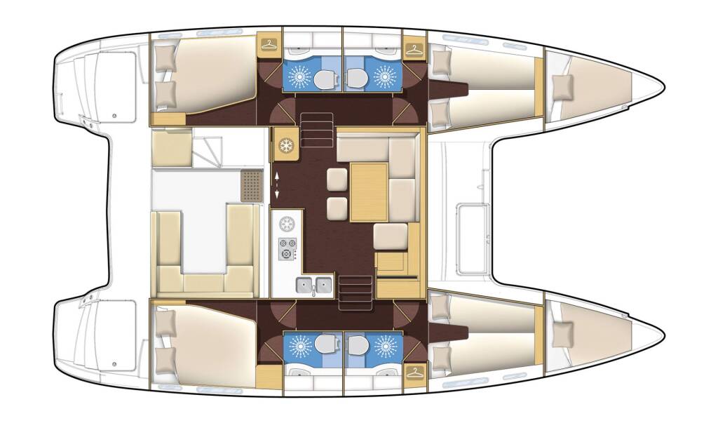 Katamaran Lagoon 400 S2 Vicky, izgrađena 2016, matična luka je Lefkas, D-Marin, Ionian Islands, Grčka. Ima 4 + 2 kabina, može primiti 8 + 2 gostiju i ima 4 + 1 WC-a.