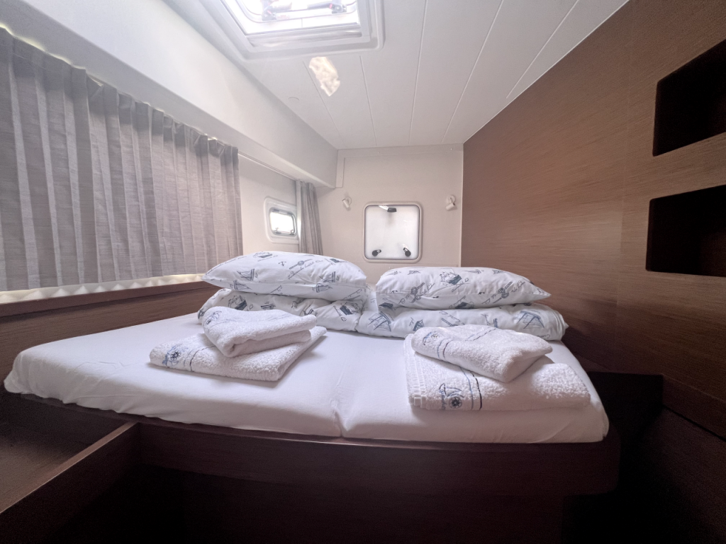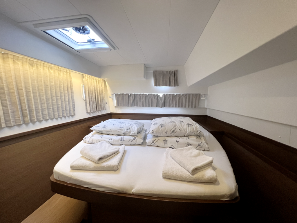 KLJUČNA OPREMA : Klima uređaj ; Generator ; aparat za vodu; ručni WC; kokpit, krovni i krmeni jastuci ; zamrzivač ; Dodatni hladnjak u kokpitu ; Inverter ; Vanbrodski motor ; aparat za kavu NESPRESSO ; Wifi Internet