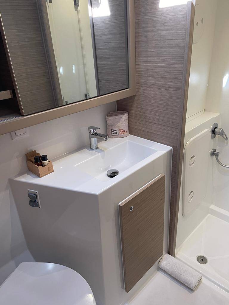 Lagoon 42 "Sailing Breeze" (3 kabine + 2 kabine za posadu dostupne izvana), izgrađen 2023. godine, jedan je od najnovijih i najbolje opremljenih Lagoon katamarana u našoj floti. Udobno je opremljen. Zahvaljujući grijanju i klimatizaciji, prava je jahta za duga krstarenja u hladnijem ranom i kasnom razdoblju, kao i u jeku ljeta. Tikovina na palubi u kokpitu i prednjem dijelu za sjedenje također naglašava visokokvalitetnu opremu Lagoon 42 Sailing Breeze. Sailing Breeze ima 3 kabine plus 2 skiperske kabine. Klima uređaj u svim kabinama i u salonu, generator, USB utičnice za punjenje i hladnjak u vanjskom prostoru su stvar sigurnosti. Naše jahte opremljene su C.I.G.O. Charter Information Guide Online. Neograničeni internet, gumenjak i vanbrodski motor uključeni su u cijenu najma.