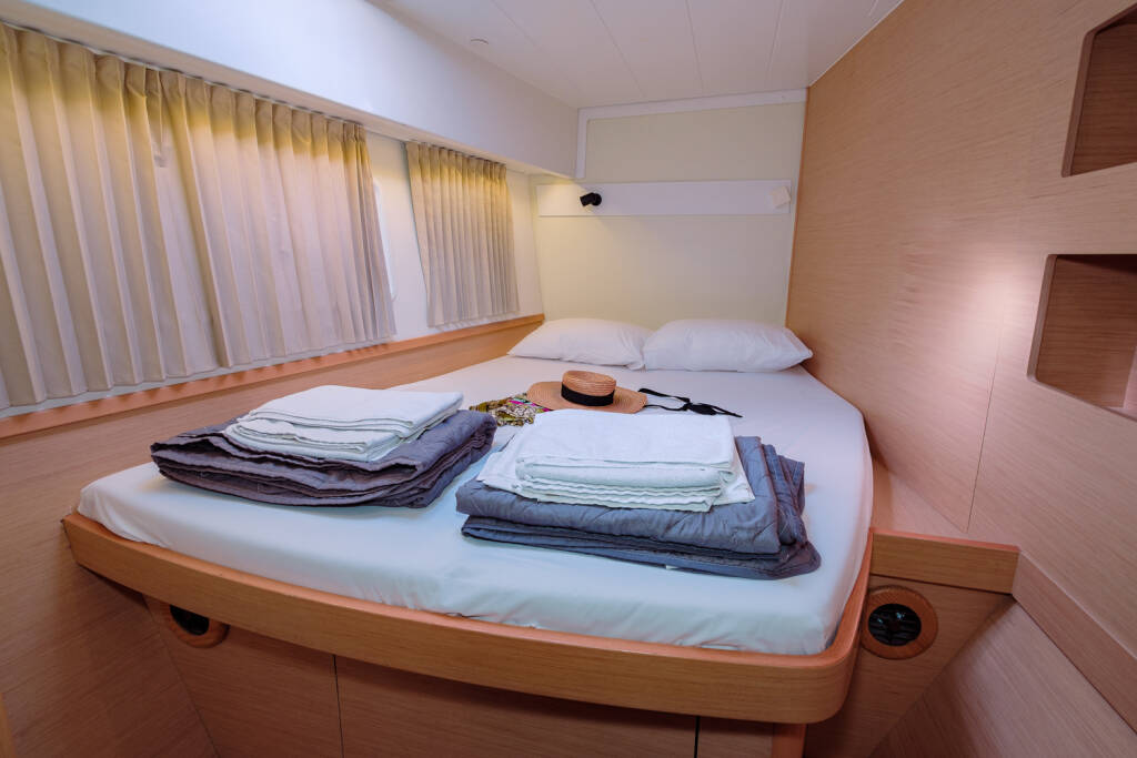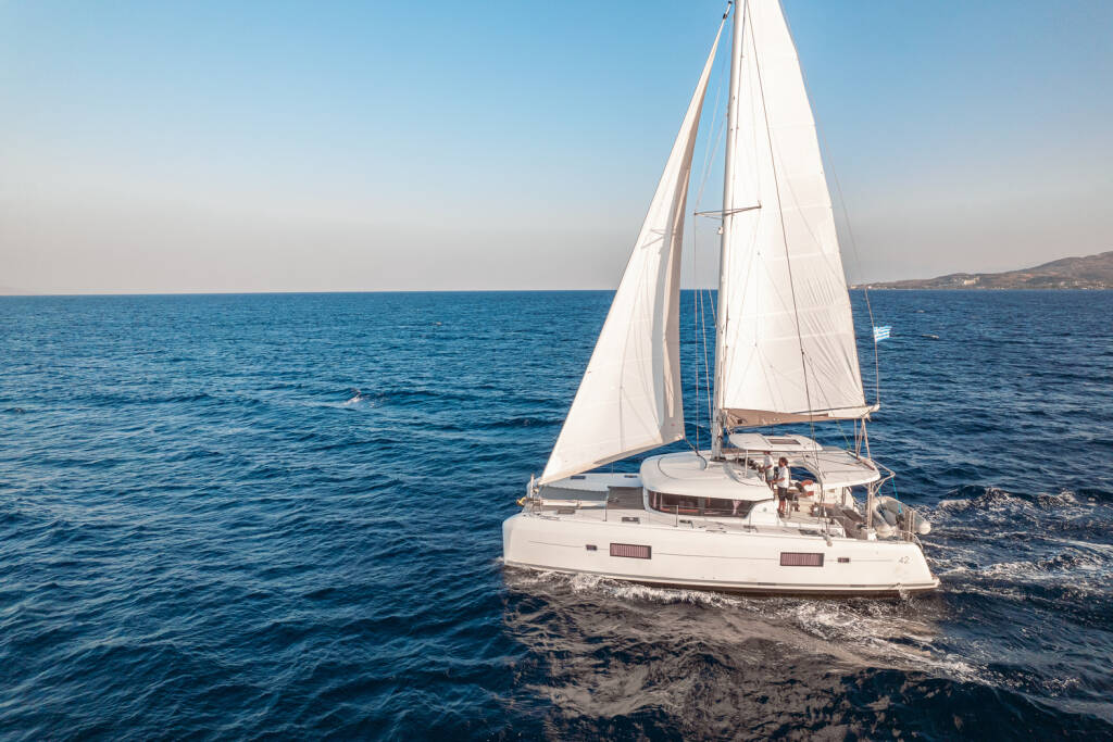 Katamaran Lagoon 42 Plous, izgrađena 2017, matična luka je Kos, Kos Marina, Dodecanese, Grčka. Ima 4 + 2 kabina, može primiti 8 + 2 gostiju i ima 4 + 1 WC-a.