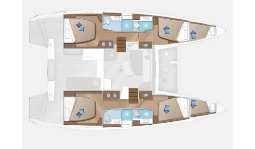 Katamaran Lagoon 42 Smaragd, izgrađena 2020, matična luka je Marina Hramina, Murter, Šibenska regija, Hrvatska. Ima 4 + 2 kabina, može primiti 8 + 2 + 2 gostiju i ima 4 WC-a.