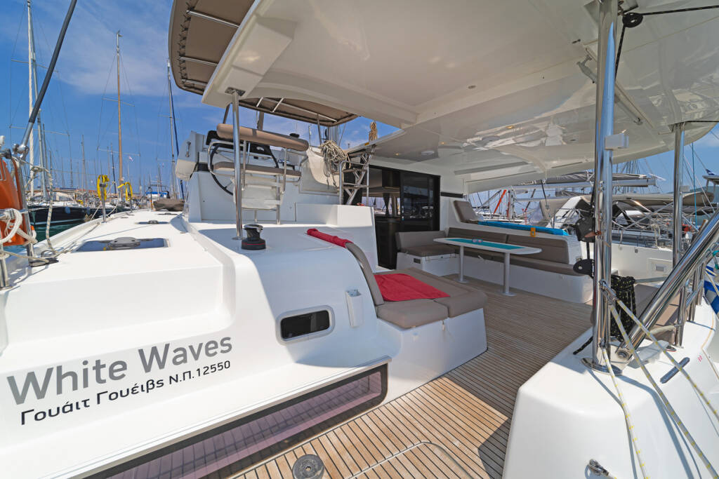 Katamaran Lagoon 42 White Waves, izgrađena 2020, matična luka je Lefkas, D-Marin, Ionian Islands, Grčka. Ima 4 + 2 kabina, može primiti 8 + 2 gostiju i ima 4 + 1 WC-a.