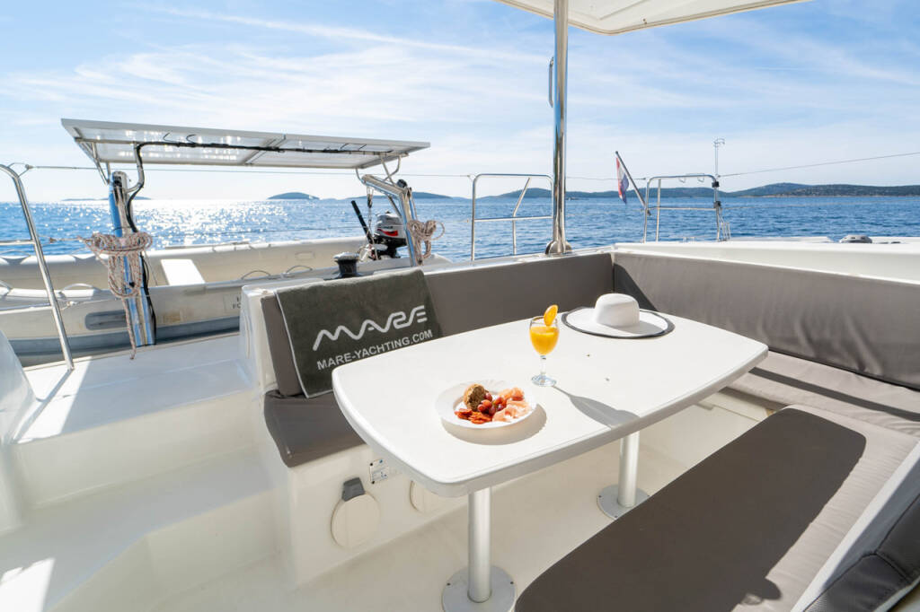 Katamaran Lagoon 421 Patch Work, izgrađena 2014, matična luka je Marina Mandalina, Šibenik, Šibenska regija, Hrvatska. Ima 4 + 1 kabina, može primiti 8 + 2 + 1 gostiju i ima 4 + 1 WC-a.