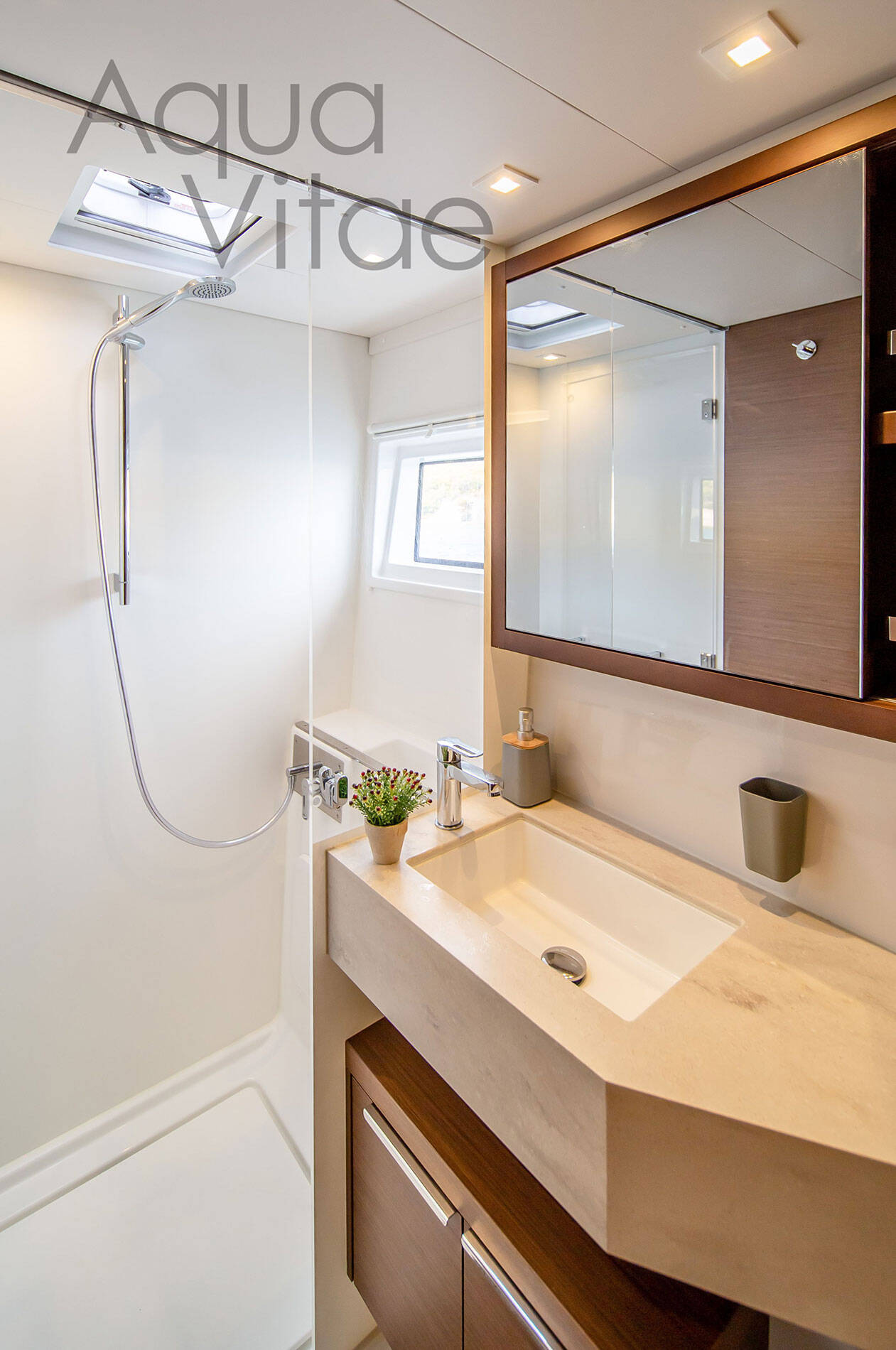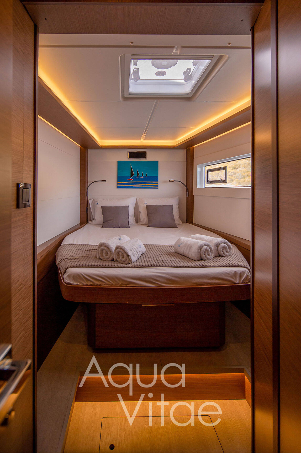 Katamaran Lagoon 46 Aqua Vitae, izgrađena 2022, matična luka je Athens, Alimos marina, Athens area/Saronic/Peloponese, Grčka. Ima 4 + 2 kabina, može primiti 9 + 1 gostiju i ima 4 + 1 WC-a.