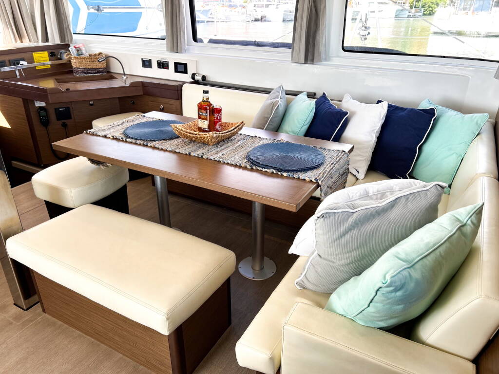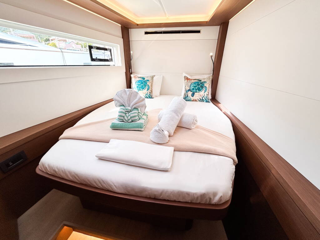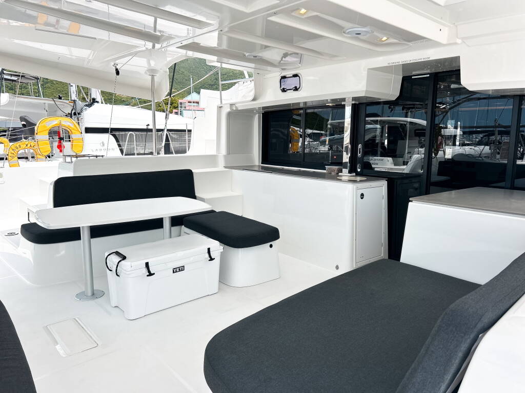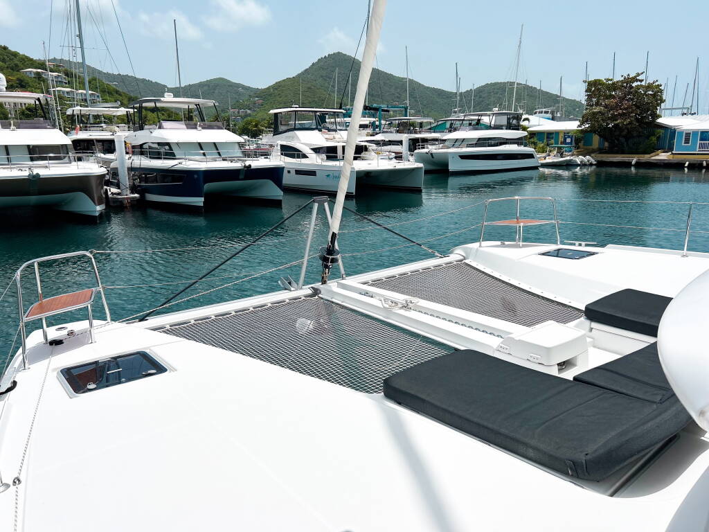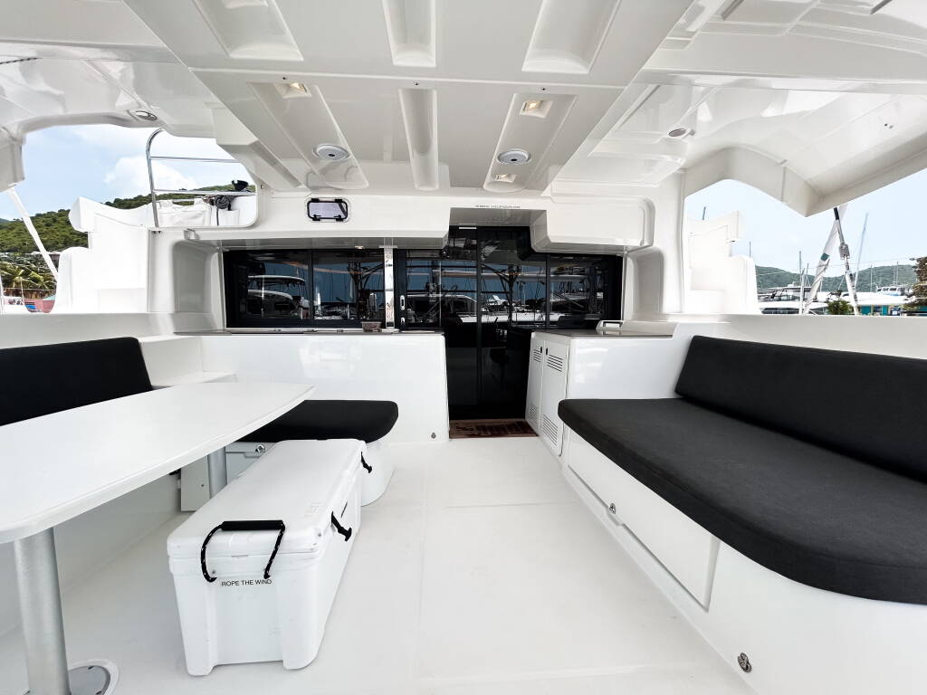Katamaran Lagoon 46 Rope The Wind, izgrađena 2023, matična luka je BVI, Tortola, Nanny Cay Marina, Britanski Djevičanski Otoci, Britanski Djevičanski Otoci. Ima 4 + 1 kabina, može primiti 8 + 1 gostiju i ima 5 WC-a.