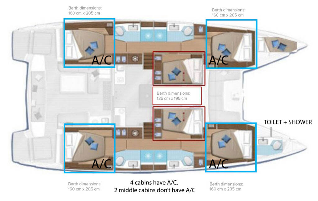 + 770 Euro deposit refundable - includes damage waiver, final cleaning, welcome package, Wi-Fi (75 GB/week), dinghy, outboard engine, bed sheets & towels, beach towels, snorkelling gear, coffee machine + 10 capsules, ice maker, cooking gas, tax - Plačanje odmah