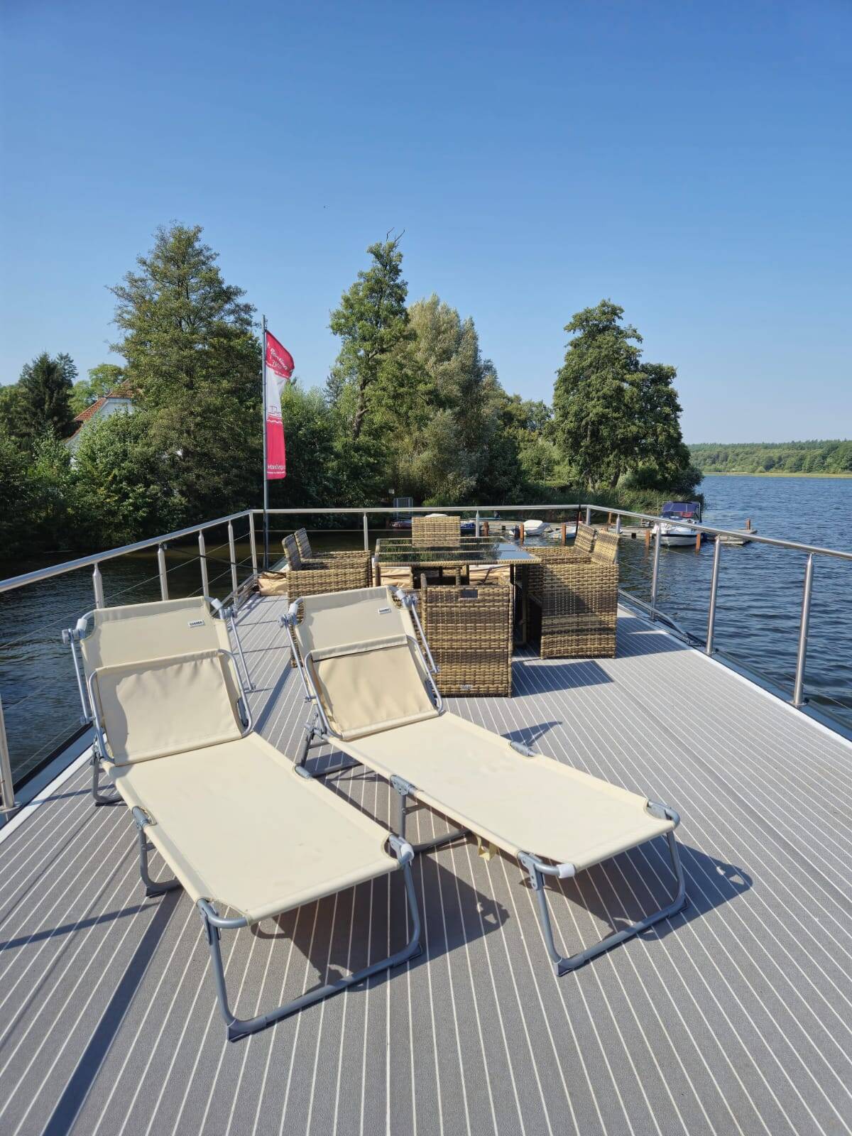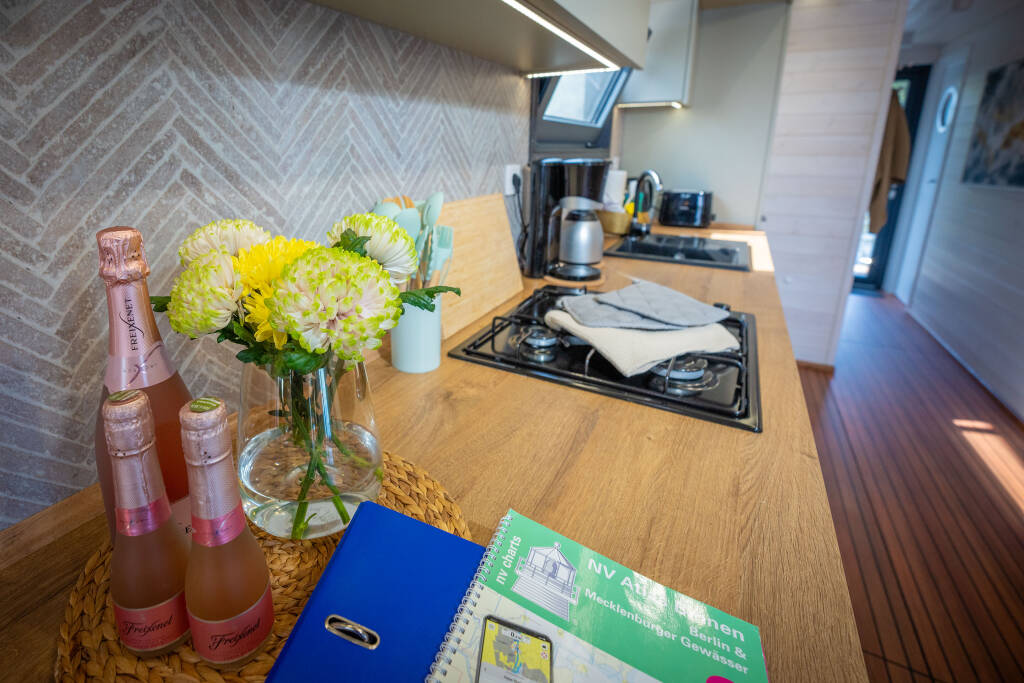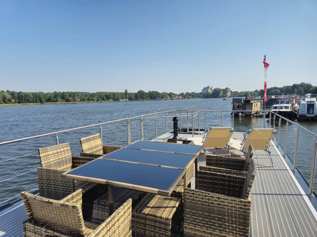 If you do not hold a recreational boating license for inland waterways, you must complete a charter license training course with us before you are allowed to set sail. This course is conducted by a member of our team on-site. The charter license includes comprehensive instruction on the boat's technology, the rules of the road on the water, and the nautical chart.