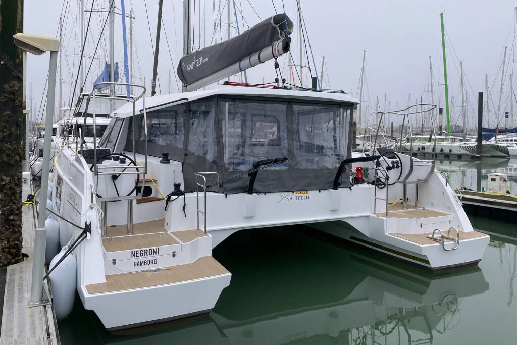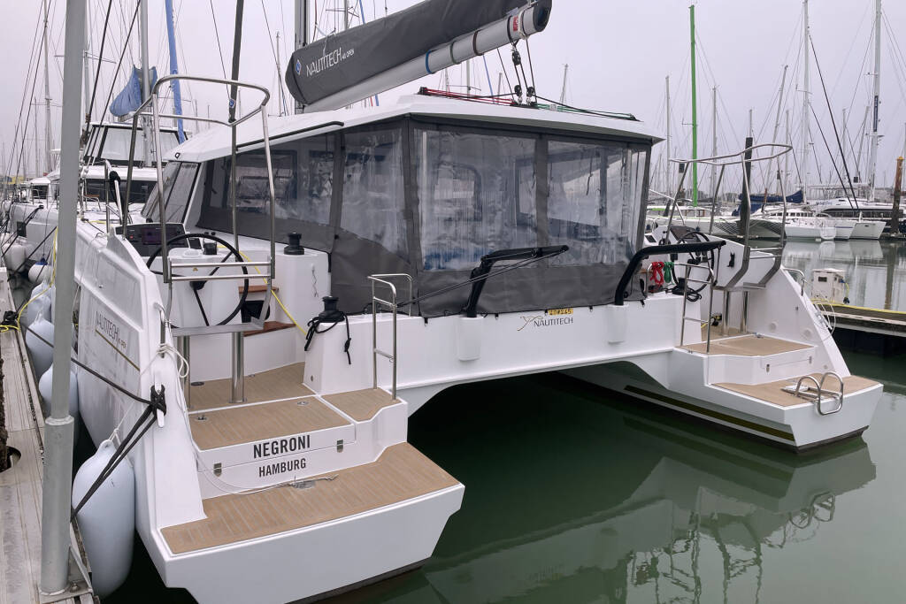 Katamaran Nautitech 40 Negroni, izgrađena 2024, matična luka je Marina Frapa, Rogoznica, Šibenska regija, Hrvatska. Ima 3 kabina, može primiti 6 + 2 gostiju i ima 2 WC-a.