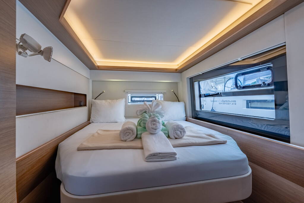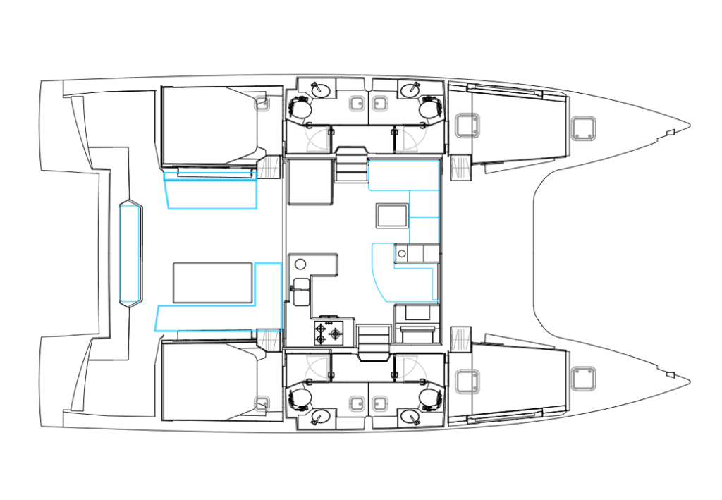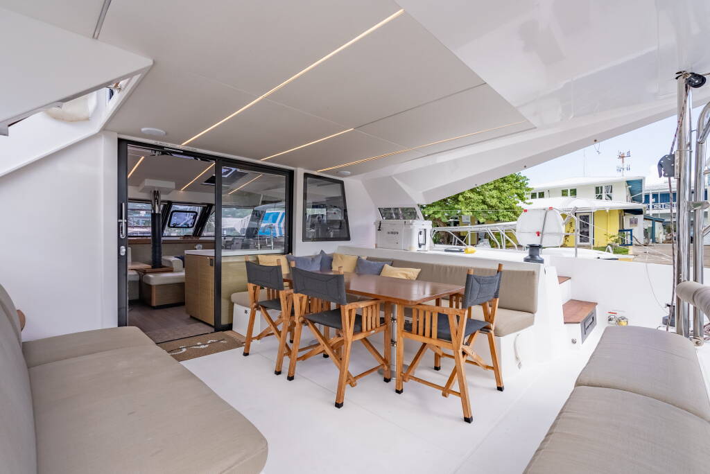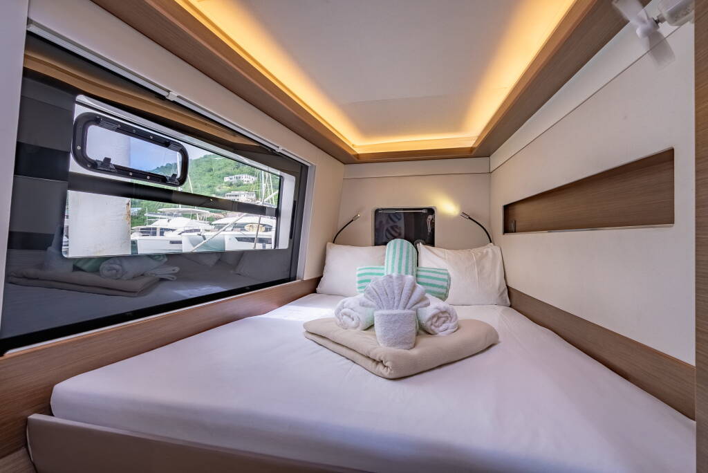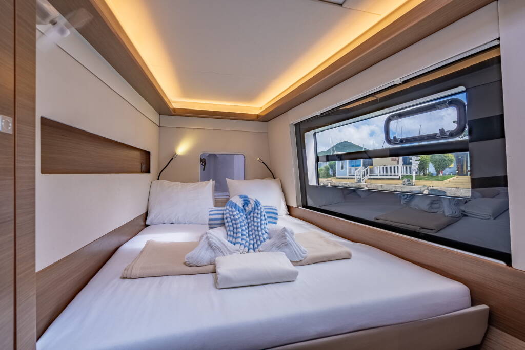 Katamaran Nautitech 46 Luna, izgrađena 2020, matična luka je BVI, Tortola, Nanny Cay Marina, Britanski Djevičanski Otoci, Britanski Djevičanski Otoci. Ima 4 + 2 kabina, može primiti 8 + 2 gostiju i ima 4 WC-a.