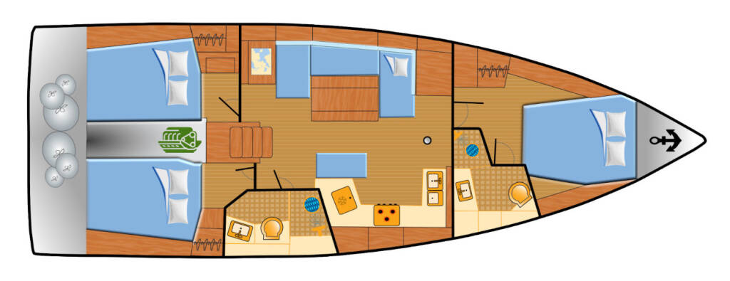 Jedrilica Oceanis 40.1 Bruna, izgrađena 2024, matična luka je Marina Kornati, Biograd, Zadarska regija, Hrvatska. Ima 3 kabina, može primiti 6 + 2 gostiju i ima 2 WC-a.
