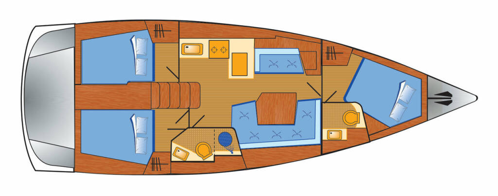 Letvičasta podloga u svim kabinama, tuš u kokpitu (toplo/hladno), električno sidreno vitlo s daljinskim upravljanjem, Hifi: Fusion s vodootpornim zvučnicima u salonu i kokpitu, zaštita za krmeno zrcalo, dvostruki ležaj u salonu, otvaranje hladnjaka sprijeda, prostor za odlaganje ispod pod, pećnica sa roštiljem, razvučeni salonski stol