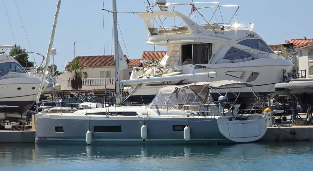 Naša Beneteau Oceanis 46.1 “Anse Soleil” ima 3 kabine i prima maksimalno 6 osoba. Na brodu se nalaze 3 kupaonice s električnim toaletima za dodatnu udobnost. Prostrana krmena platforma poziva vas na kupanje u kristalno čistom Jadranskom moru. Pramčani potisnik olakšava manevriranje u marinama i lukama. Spremnici za vodu ukupnog kapaciteta 570 litara omogućuju dulji boravak u uvalama bez potrebe za povratkom na kopno. Za dodatnu udobnost na brodu se nalaze klima-uređaj i električni ventilatori u svim kabinama, generator snage 8 kW te inverter. U slučaju bezvjetrice, snažan motor od 80 KS omogućuje siguran dolazak na odredište. Radio s USB priključkom i Bluetooth vezom pobrinut će se za savršenu glazbenu pozadinu vašeg odmora. Sve naše jahte opremljene su sustavom C.I.G.O. (Charter Information Guide Online). U cijenu najma uključeni su i: neograničen internet, pomoćni čamac (dinghy) i vanbrodski motor.