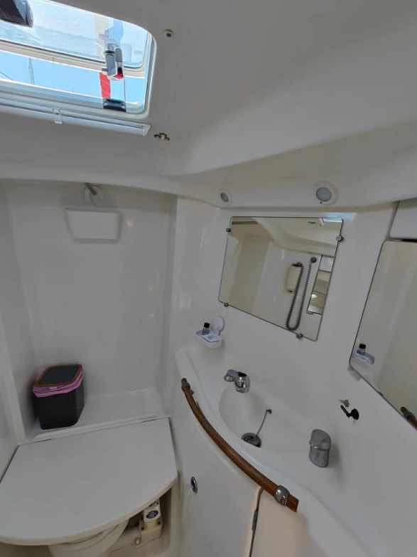 Jedrilica Oceanis Clipper 393 Crete, izgrađena 2002, matična luka je Athens, Marina Delta Kallithea, Athens area/Saronic/Peloponese, Grčka. Ima 3 kabina, može primiti 6 + 2 gostiju i ima 2 WC-a.
