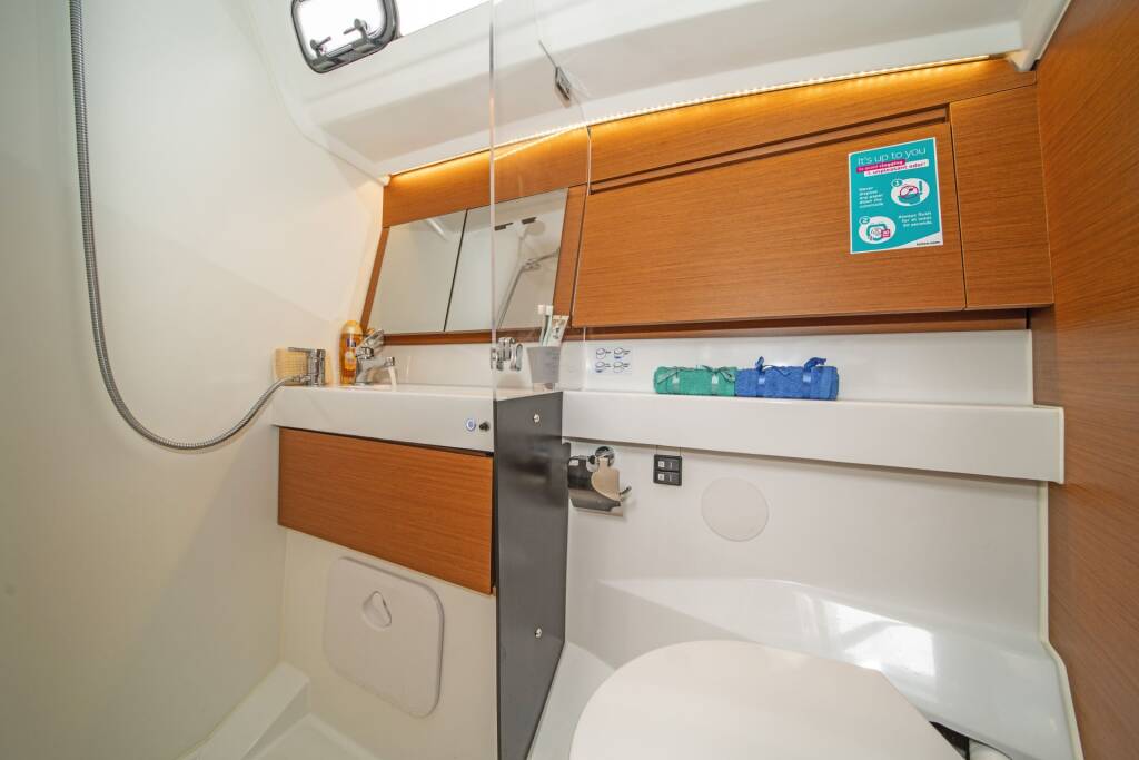 Jedrilica Sun Odyssey 410 Aella, izgrađena 2022, matična luka je Skiathos, Skiathos/Sporades, Volos, Grčka. Ima 3 kabina, može primiti 6 + 2 gostiju i ima 2 WC-a.
