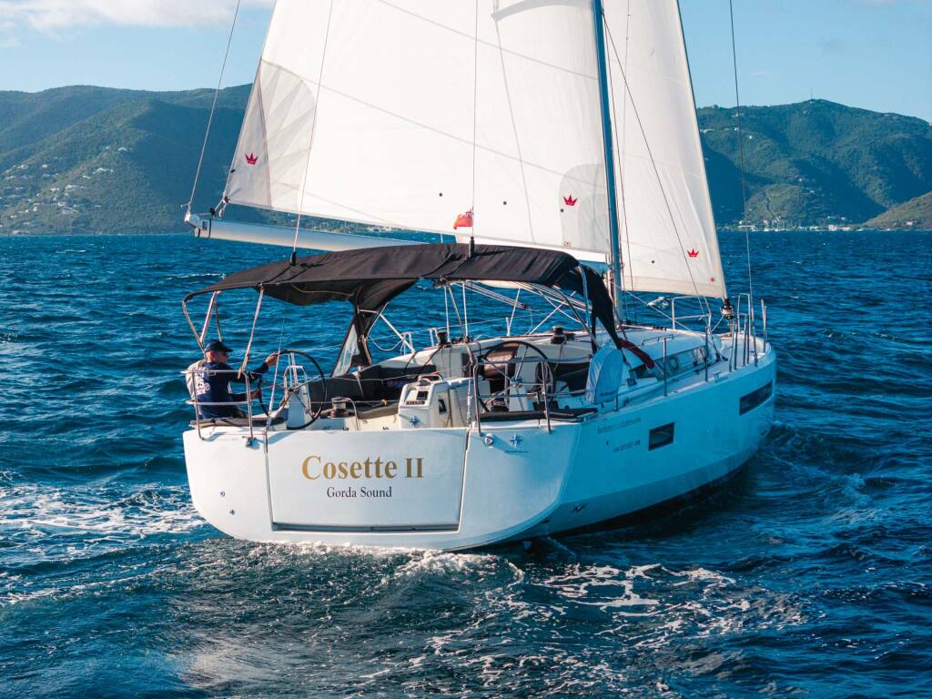 Jedrilica Sun Odyssey 490 Cosette II, izgrađena 2020, matična luka je BVI, Tortola, Nanny Cay Marina, Britanski Djevičanski Otoci, Britanski Djevičanski Otoci. Ima 4 + 1 kabina, može primiti 8 + 1 gostiju i ima 5 WC-a.