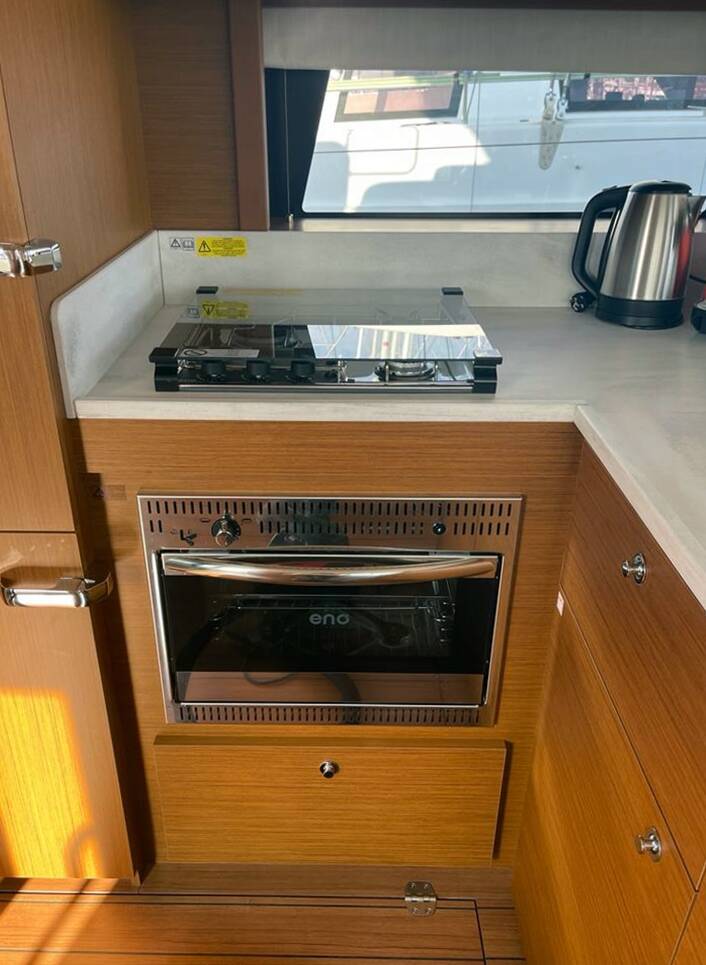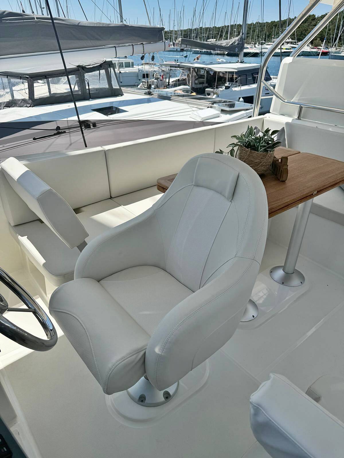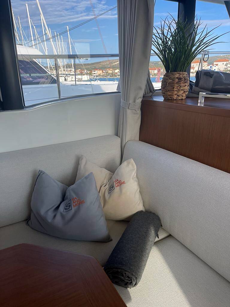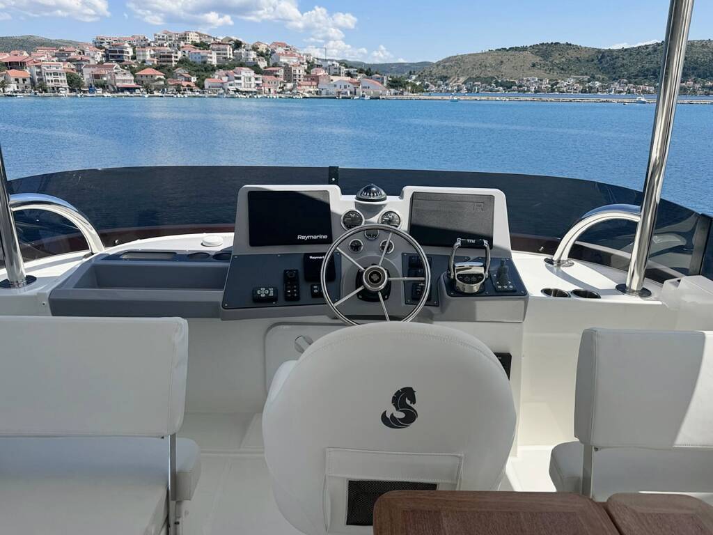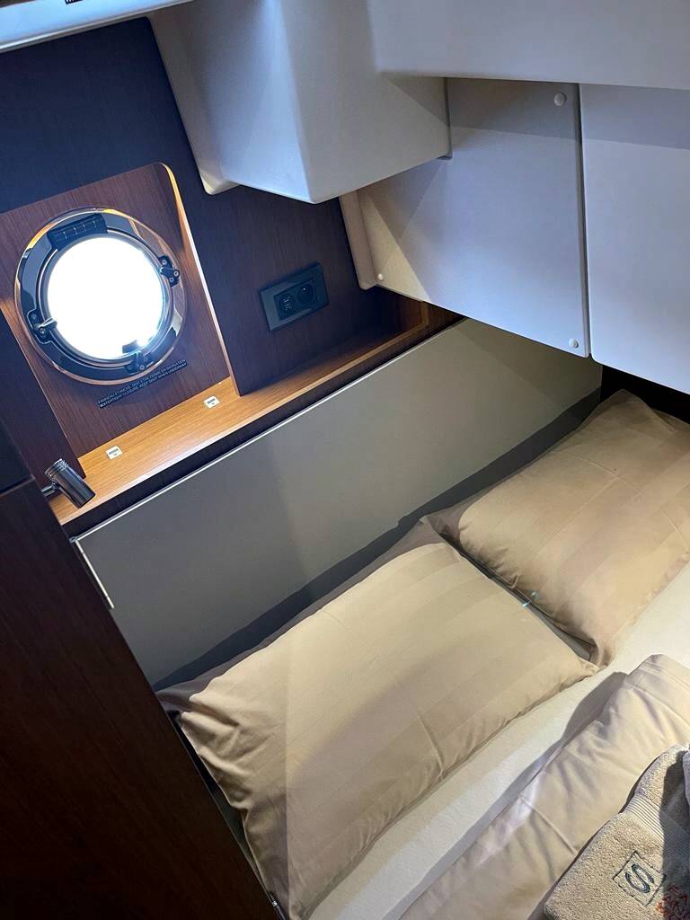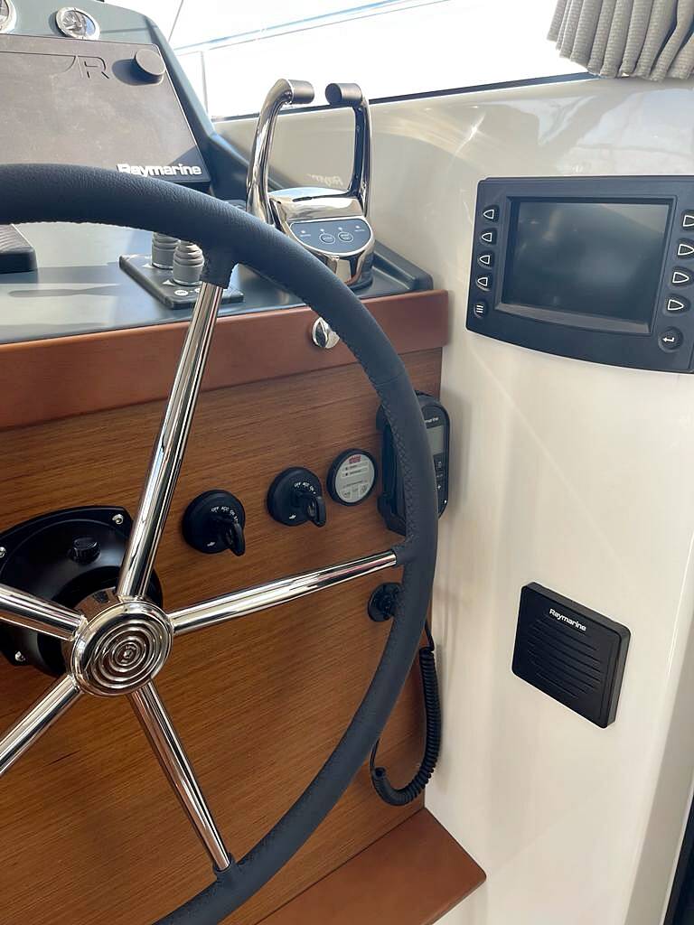 The generous space on the flybridge invites you to enjoy special moments on the sea. The air-conditioning system ensures pleasant temperatures on board even in summer. The two 380 hp engines take you comfortably to your cruise destination. Nespresso coffee machine, WIFI free of charge.