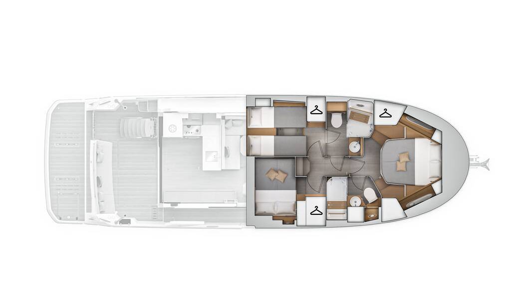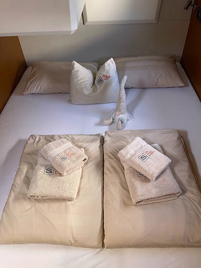 3 cozy cabins guarantee relaxing nights on board. Trawler 48 Nereide is considered as very safe due to its special concept.